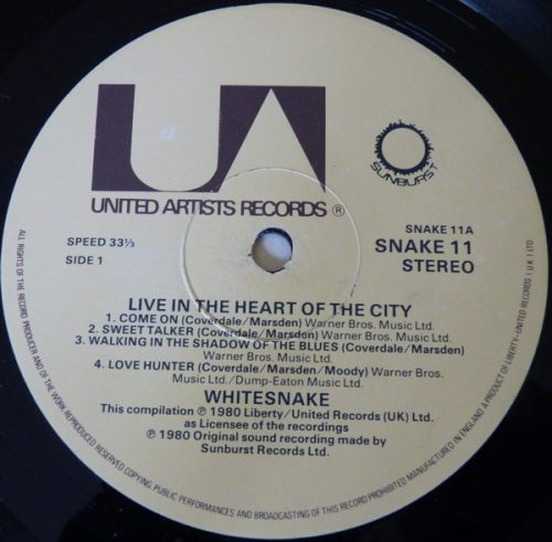 Whitesnake – Ain’t No Love In The Heart Of The City LP – UK pressing