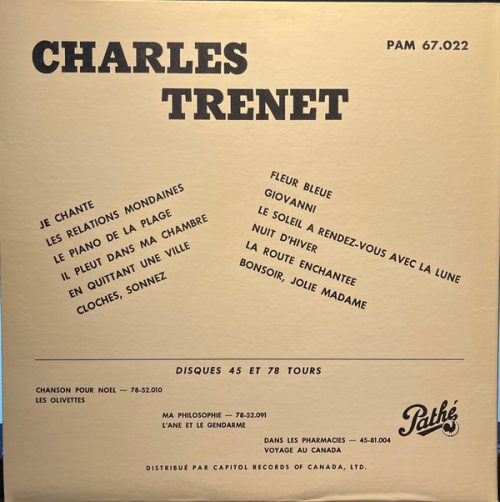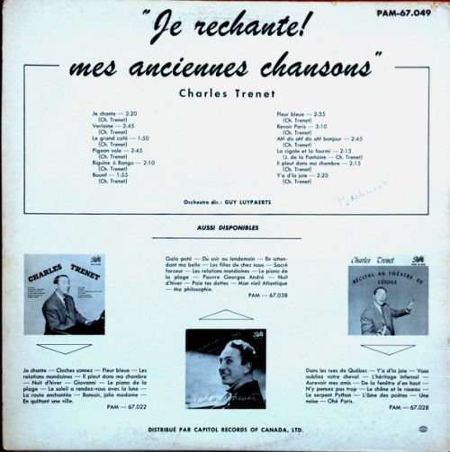 Charles Trenet – Je Chante LP _ 1957 _ Mono Canadien
