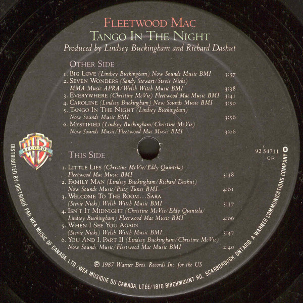 Vinyle, Album, Label : Warner Bros. Records – 92 54711, 1987, Canada