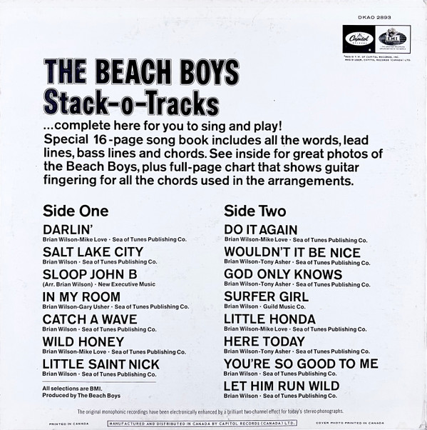 État de la pochette :VG to EX Avec le booklet contient quinze chansons instrumentales des Beach Boys « à chanter et à jouer ».