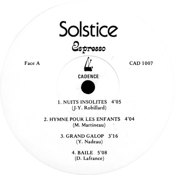 Vinyle, Album, Label : Les Disques Cadence – CAD 1007, 1980, Canada