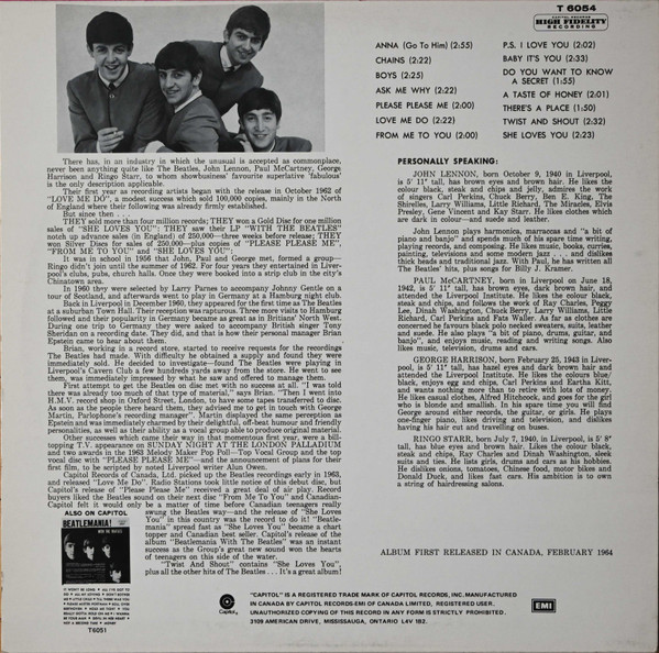 Vinyle, Album, Label : Capitol – ST-6054, (c)1964 _ (p)1980, Canada