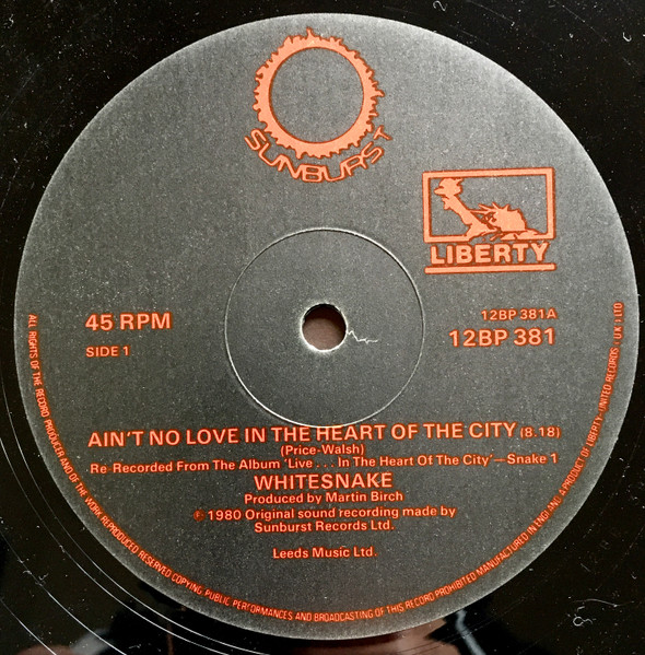 Whitesnake – Ain’t No Love In The Heart Of The City LP – UK pressing