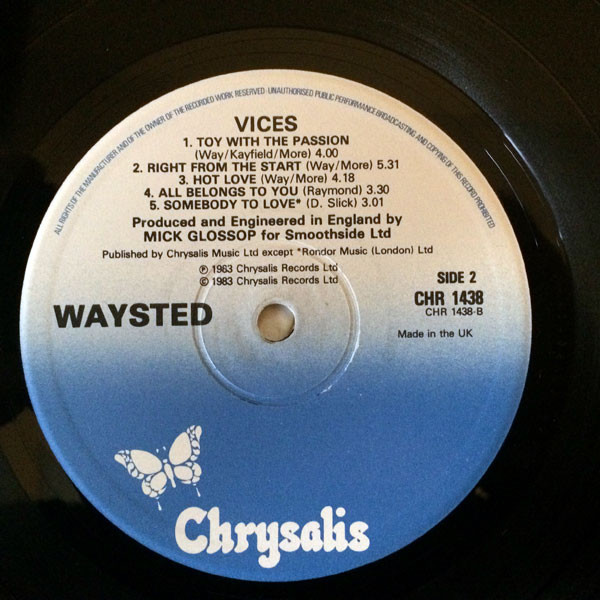 Waysted – Vices LP- Hype sticker- UK Pressing.