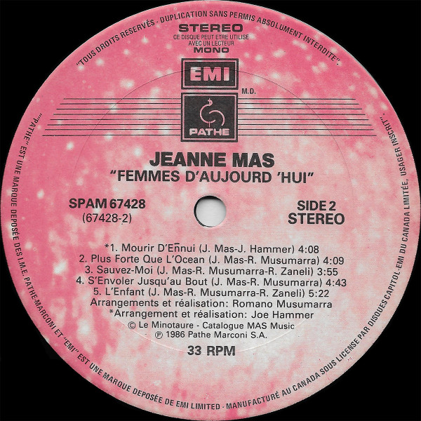 Vinyle, Album, Label : Pathé – SPAM 67428, 1986, Canada